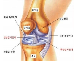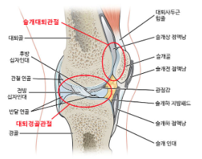 무릎관절은 다리의 중간 부분에 위치해 있습니다.